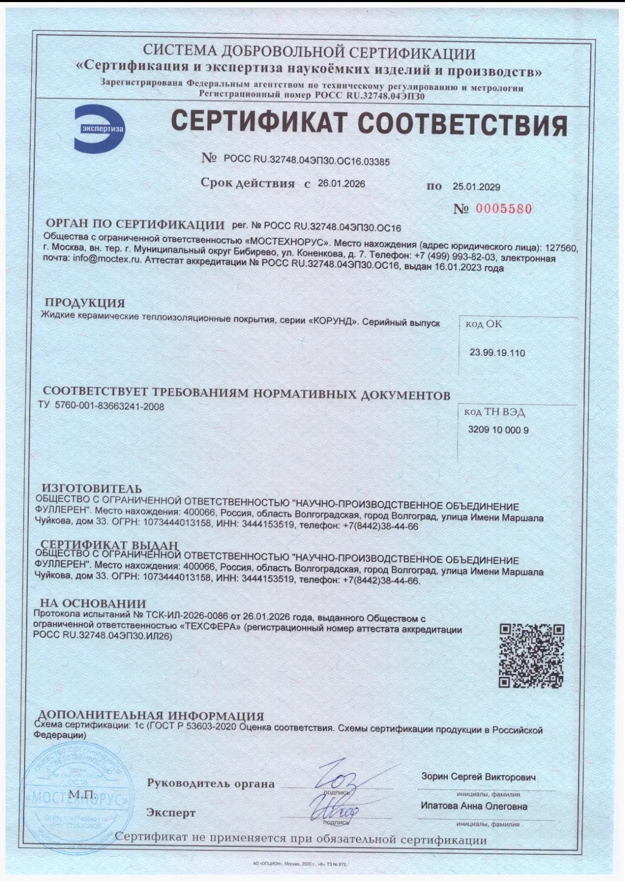 Корунд СПб https://korund.spb.ru Жидкая керамическая теплоизоляция Корунд в Санкт-Петербурге | Купить теплокраску Корунд Thu, 29 Jan 2026 14:11:37 +0000 ru-RU hourly 1 https://wordpress.org/?v=6.8.1 Обновленный  Сертификат Соответствия КОРУНД до «25» января 2029г. https://korund.spb.ru/8668-2/ Thu, 29 Jan 2026 14:09:05 +0000 https://korund.spb.ru/?p=8668 Уважаемые клиенты,